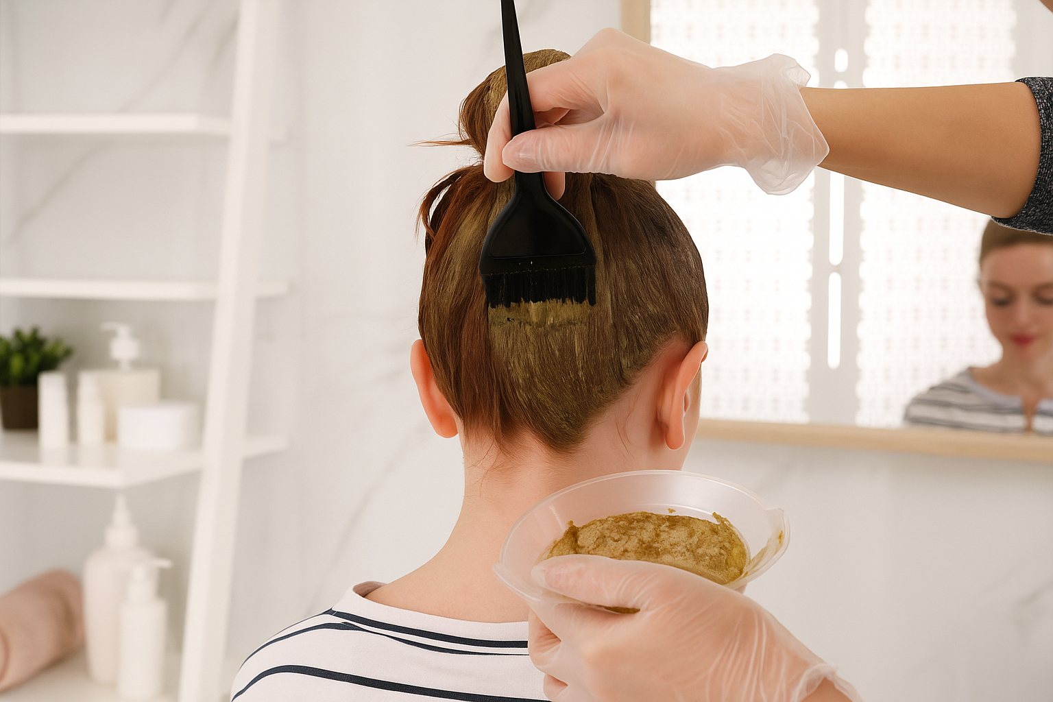 జుట్టు తులిపి విభజనలు చేసి, మూలాల నుంచి చివరల వరకు మిశ్రమాన్ని అప్లై చేయడం.