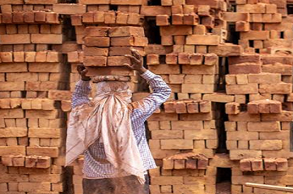 మొదటి అంతస్తులో ఇటుకలు ఎత్తడం